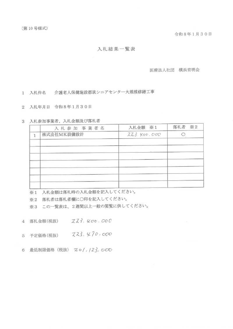 都筑シニアセンター大規模修繕工事のおける入札結果について